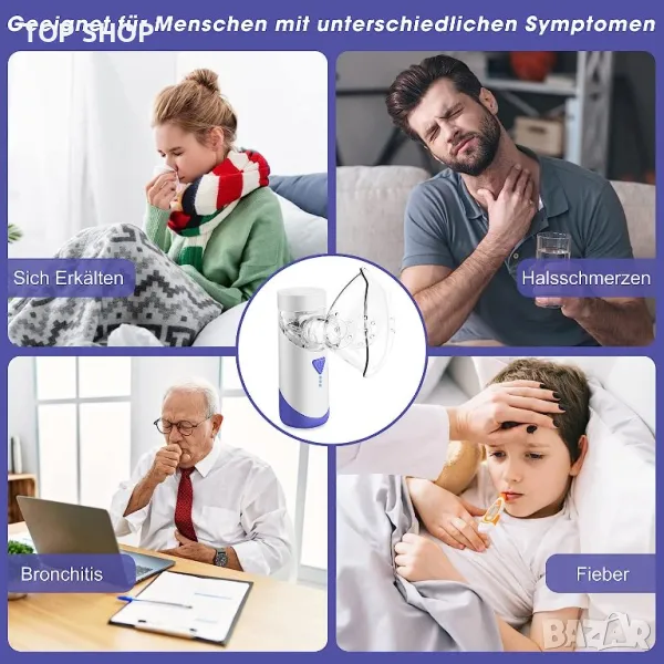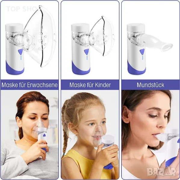 Инхалатор Небулизатор с мундщук и маска за деца и възрастни,