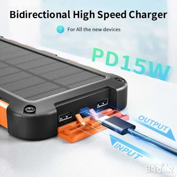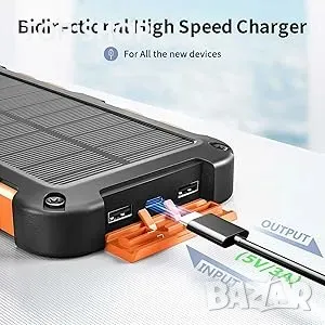 Solar Power Bank 20000mAh, PD 15W Бързо зареждане USB C Преносимо
