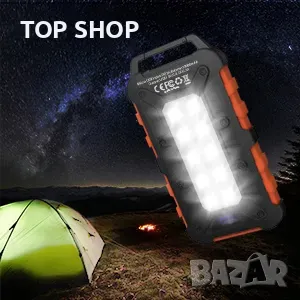 соларно зарядно устройство с 3 изхода и 10 LED фенерчета, Бързо зареждане на външна батерия за смартфони, таблети на открито