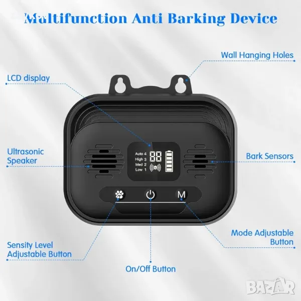 🐕【Лесен за инсталиране и преносим дизайн】Устойчиво на дъжд IP4 устройство за спиране на лай и преносима кука, подходящи за окачване на дървета, стени или стълбове на ограда, за да предотвратите лаенето на вашето собствено или съседско куче. И е компактен и преносим, лесен за носене, когато разхождате кучето си.