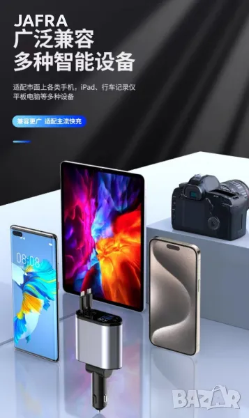 100W Бързо Зарядно за Автомобил с Прибиращи се Кабели, LED Дисплей, Подарък, Отстъпки