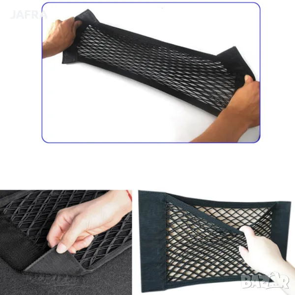 Велкро закрепване, органайзер, автомобил, универсална, багажна, еластична, SUV, джипове, съхранение, малки предмети, инструменти, принадлежности, гъвкава, бутилки, 50x25 см, организиране, практична, стабилно, кабели, джоб ван мултиван миниван камион авто кола мпс коли