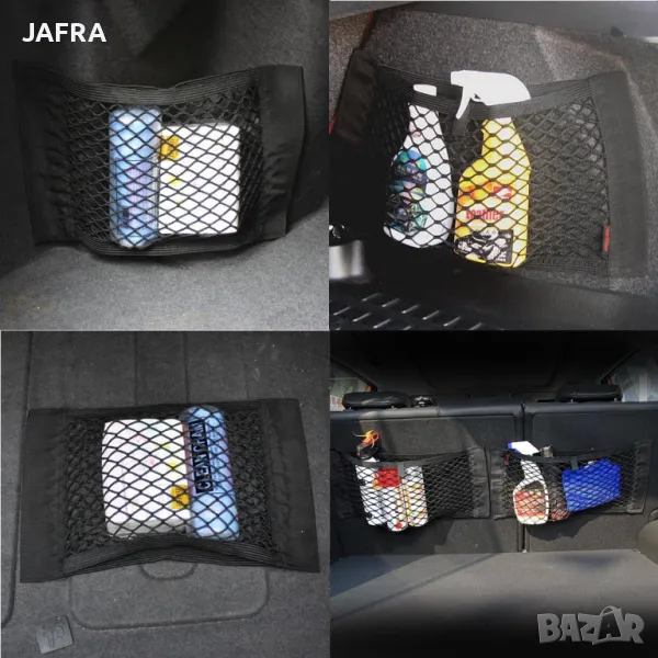 🧰 Универсална мрежа за багажник с велкро закрепване и двойно залепваща лента - комплект от 2 бр.. Сложете край на разпиляните предмети които се търкалят в багажника с универсалната мрежа за багажник с велкро закрепване. Тя се монтира бързо и сигурно на стените или пода на багажника, без нужда от инструменти. Перфектна за съхранение на малки предмети като бутилки, кабели, инструменти и аксесоари.