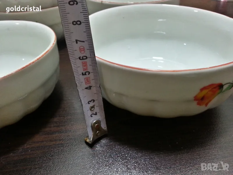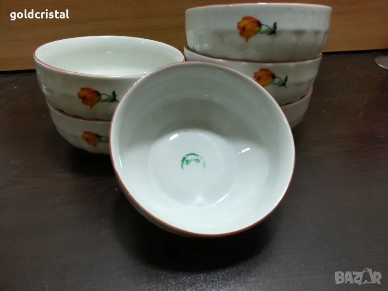 Стар български порцелан купички неизползвани с воден печат червен кант шарка лалета сервиз комплект сет лот ретро арт декор винтидж колекция стари старинни антикварни предмети обзавеждане за дома и семейството подходящи за подарък за ценители и колекционери