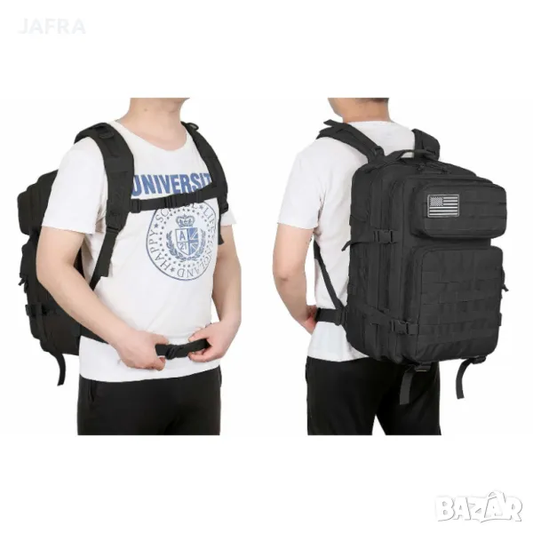 тактическа, туристическа, 45L, военна, MOLLE, универсална, щурмова, водоустойчива, екипировка, лов, риболов, спортна, оцеляване, фитнес, модулна, армейска, карабинери, персонализирана, къмпинг, училище, лаптоп, дишаща, подплатен гръб, удобна, airsoft, ловна, военна, туризъм, преходи, непромокаема, устойчива, здрава, персонализиране, нашивка, нашивки, пач, пачове,