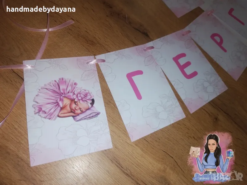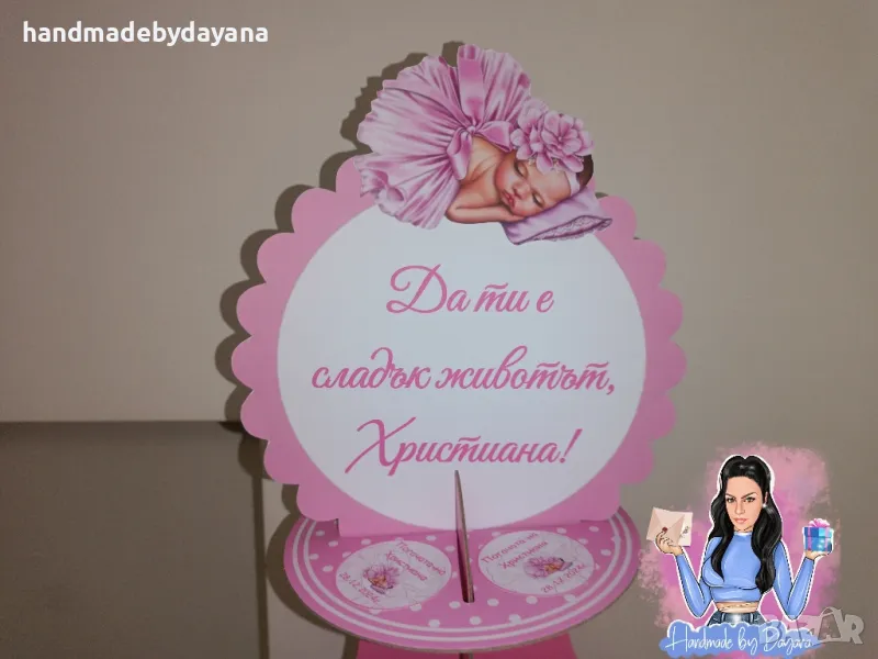 Украса за бебешка погача '' Розово бебе с панделка '' → Обява 48646858