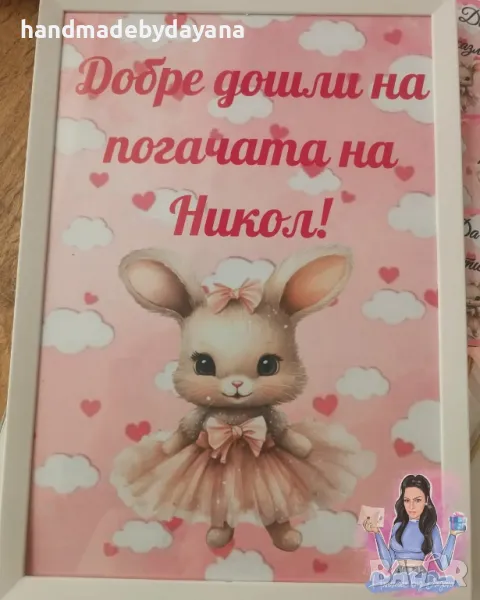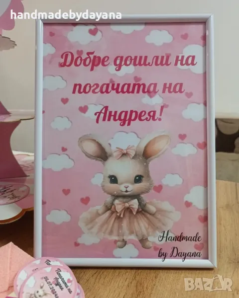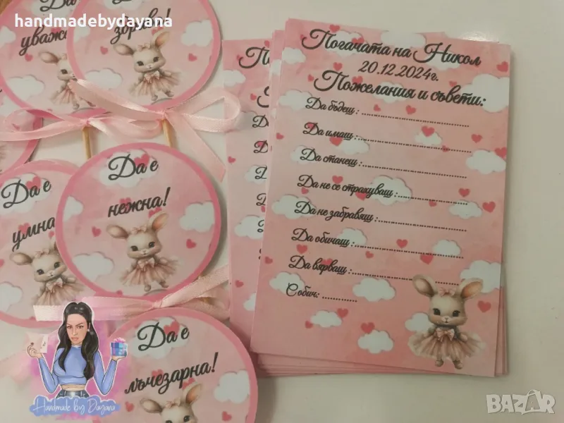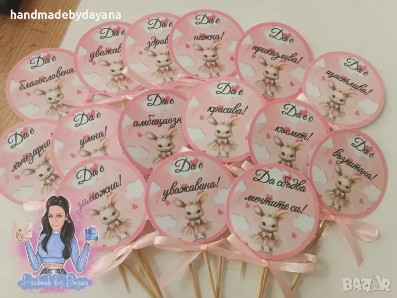 Украса за бебешка погача "Зайче с розова рокля '' → Обява 48646873