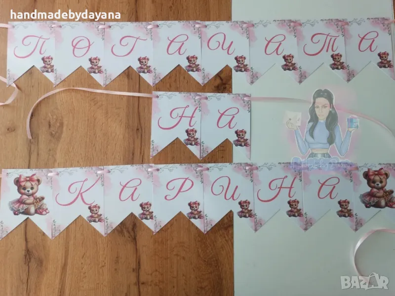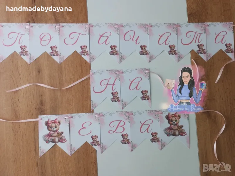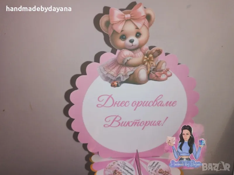 Украса за бебешка погача '' Мече с панделка '' → Обява 48647043