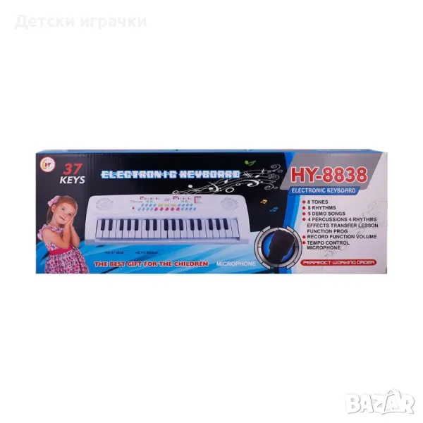 Детски синтезатор, йоника, пиано с микрофон 37 клавиша