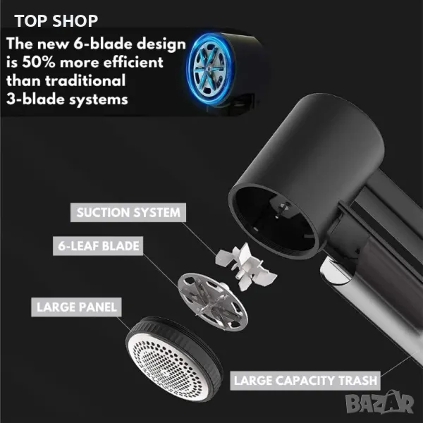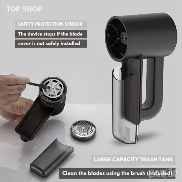 Акумулаторна самобръсначка за дрехи и мебели - Регулируемо ножче с 3 скорости, 6 листа, LED дисплей, USB зареждане - Дебоблер с двойна защита