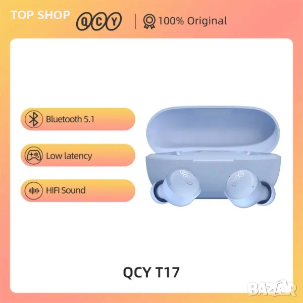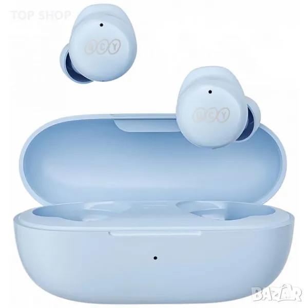 БЕЗЖИЧНИ СЛУШАЛКИ С POWERBANK QCY T17, BLUETOOTH 5.1, POP UP APP, ENC ТЕХНОЛОГИЯ, TOUCH CONTROL, Светло сини
