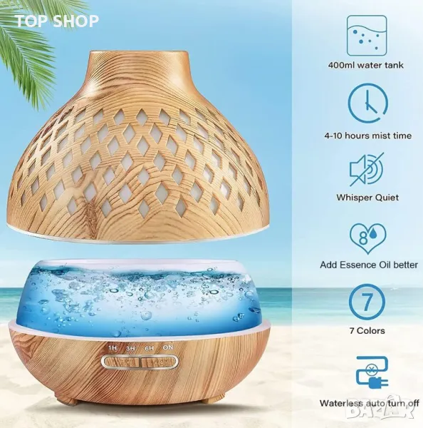 Junlic Aroma Diffuser 400 ml, ултразвуков овлажнител с осветление