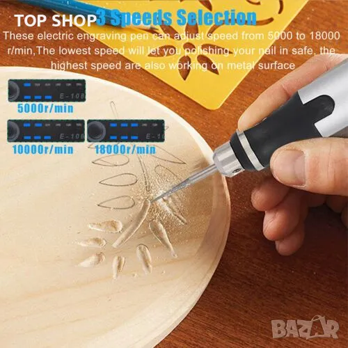 Преносим и лесен за работа: Граверът за прецизно шлифоване е дълъг само 21,5 cm (8,46 инча) и тежи само 43 g (0,09 lbs), така че можете да го поставите във всяка своя чанта и джоб на дрехи. Можете да превключвате и регулирате скоростта с един ключ, има общо 3 предавки, скоростта на 1-3 предавки е 5000-10000-18000 Rpm/Min, можете да изберете според вашите нужди.