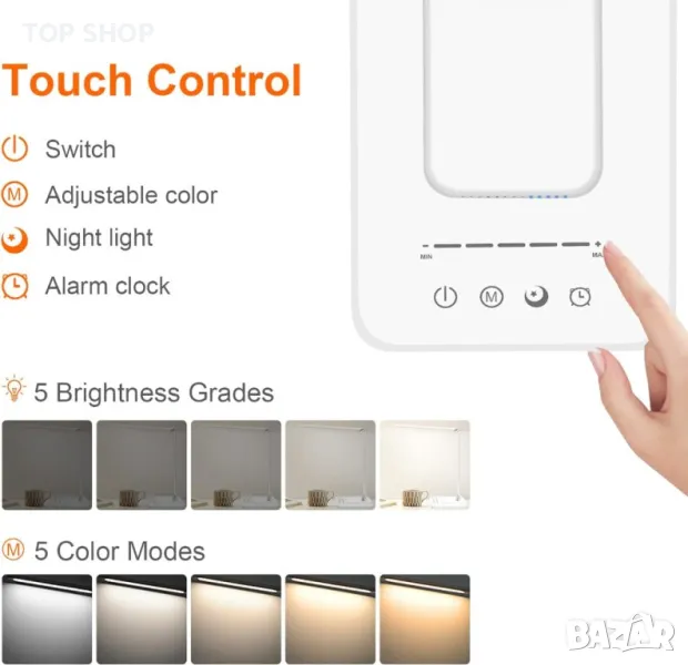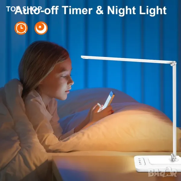 45 минутен таймер: тази настолна лампа има функция за автоматично изключване за 45 минути, особено подходяща за четене преди лягане