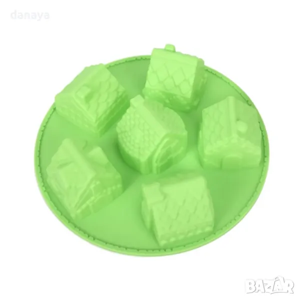 5628 Кръгла силиконова форма коледни къщички, 6 гнезда