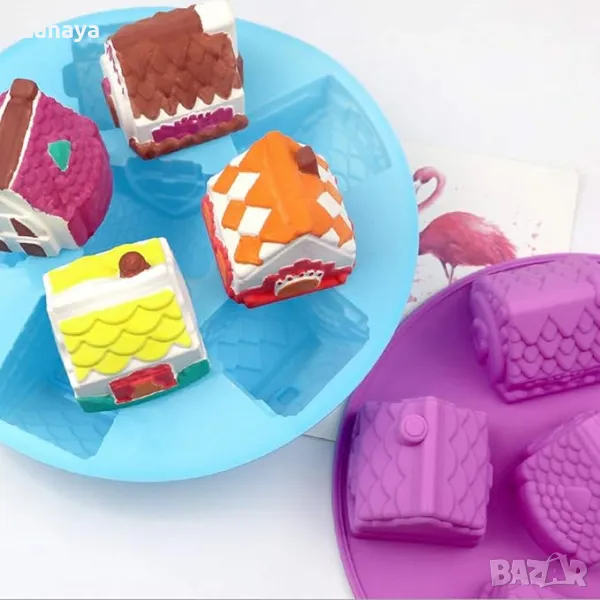 Кръгла силиконова форма с 6 различни Коледни къщички