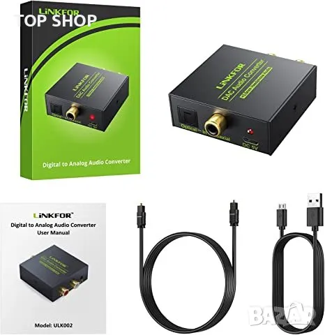 DAC linkfor DAC Цифрово-аналогов аудио конвертор Оптичен коаксиален към аналогов RCA L/R аудио адаптер Оптичен кабел с 3,5 мм жак изход за HDTV DVD Blu ray Sky HD XBOX 360 TV Box