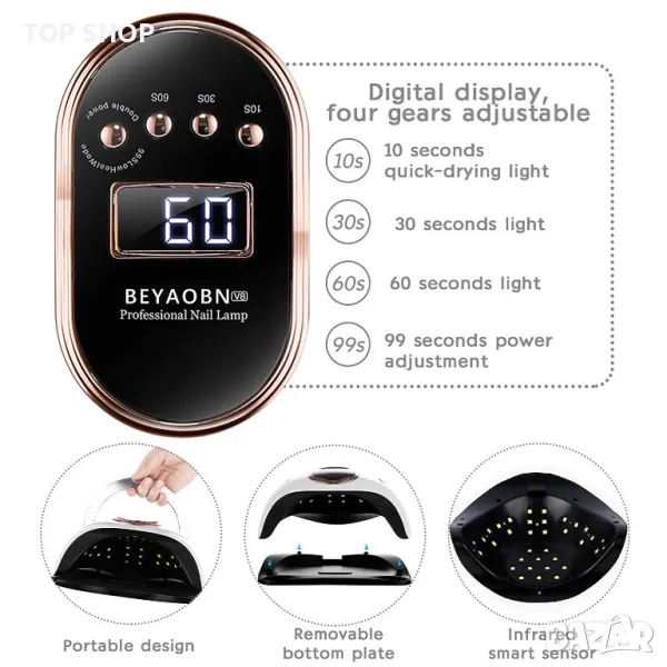 BEYAOBN 168 W сушилня за нокти UV LED лампа за нокти за нокти, професионална лампа за нокти с 4 наст