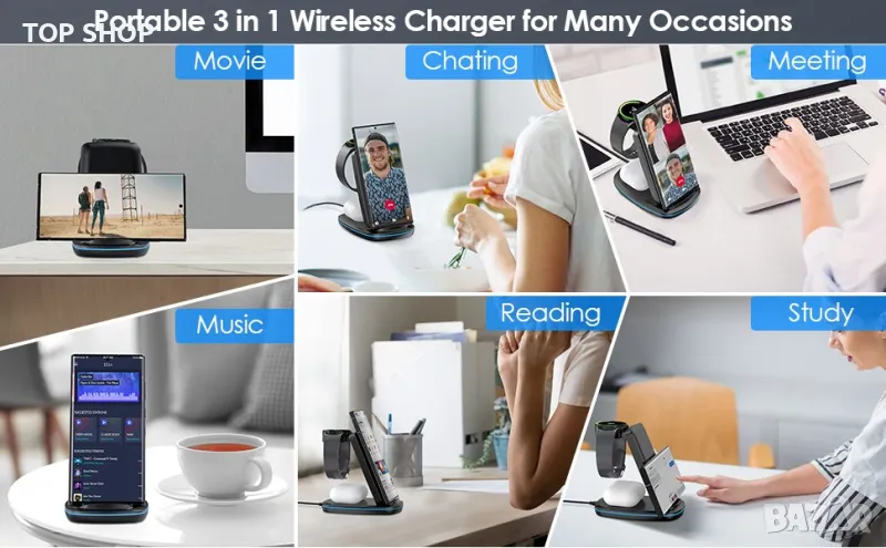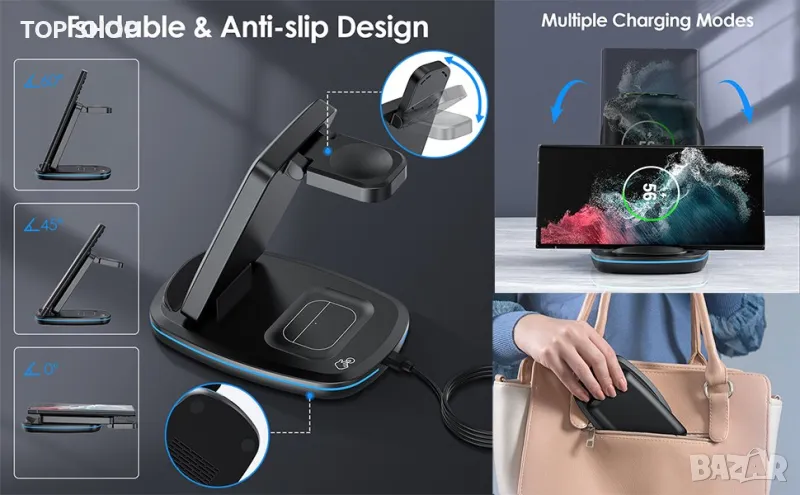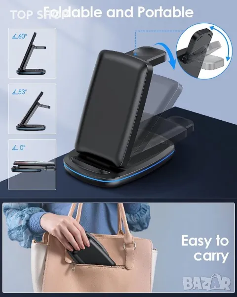 Безжично зарядно устройство 3 в 1, сгъваема станция за бързо зареждане,Samsung,iPhone,Huawei,Xiomi