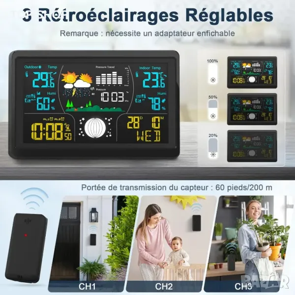 Метеорологична станция LCD цвят премиум домашна метеорологична станция Xmifer. Използването на най-модерния вносен чип значително подобрява точността на данните. Оборудван със 7-инчов Ultra HD дисплей, цялата показана информация е ясна и лесна за четене. Помага ви да следите промените във времето, преди да излезете или да пътувате.