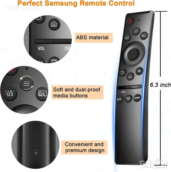 Универсално дистанционно управление за Samsung Smart-TV, дистанционно замяна с Netflix Prime-Video бутони