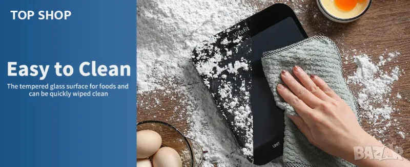 Везната е проектирана от закалено стъкло със стабилни размери 8.5x7.1x0.9in / 215x180x22mm; Удивителният капацитет и платформата за претегляне Jumbo са за вашите нужди от претегляне във всяка кухня.