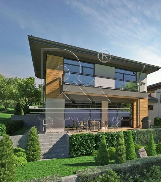 Къщите са 3 вида с различна квадратура в обособени самостоятелни дворчета с квадратури от 400-500кв.м., като всяка една разполага със собствен гараж с топла връзка, просторни хол с трапезария и кухня, мокро помещение, килер, тоалетна с баня и веранда обособени на първия етаж и три спални с две бани и тоалетни + дрешник и 3 тераси на втория етаж. Обособени са 3 паркоместа към всяка къща. Светлата височина на помещенията е 3м. Фасадите са изключително раздвижени и се състоят от 3 компонента, сами по себе си сложни за изпълнение, а именно - каменна облицовка травертин с изолация XPS 10см., вентилируема облицовка от фасаден ламинат с изолация каменна вата 10см. и мазилка с изолация EPS 10см. Градински подови настилки с павета Земелрок. Дограма Кьомерлинг с троен стъклопакет, тухли Винербергер. Изпълнението по време на строителството НАДГРАЖДА самия проект и заложениете в него материали с по-качествени и скъпи.