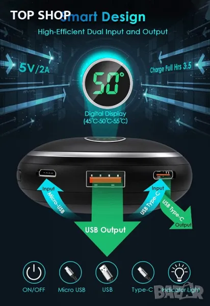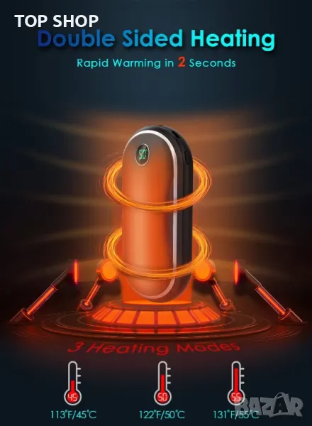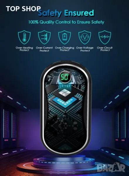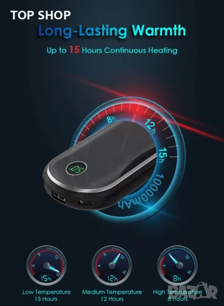 Акумулаторен нагревател за ръце,Power Bank 10000mAh, 15 часа издръжливост,цифров дисплей