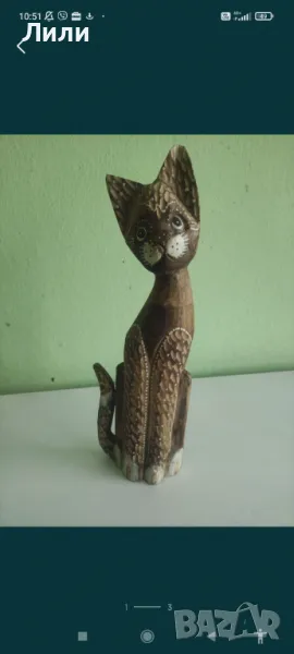 Дървена статуетка на котка., снимка 1 - Декорация за дома - 48648845  Дървена статуетка на котка., снимка 2 - Декорация за дома - 48648845 1/2