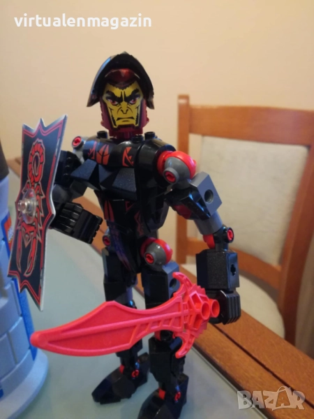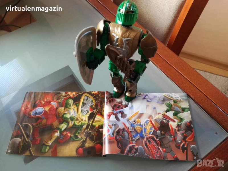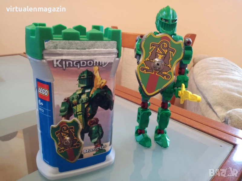 Пълен комплект със следната забележка - мъничкият черен елемент (номер на елемента в Лего - 4740), който държи щита отпред е заменен с абсолютно същият, но тъмно сив на цвят.