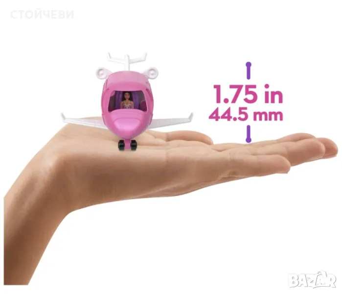 Комплектът включва самолет, който променя цвета си от топлина или студ и мини Барби.