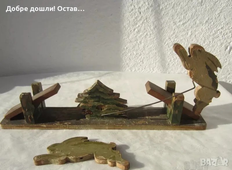 - Много стара механична играчка, с зайци, дърво, дървена, за ремонт.33 см е дълга. - 30 евро