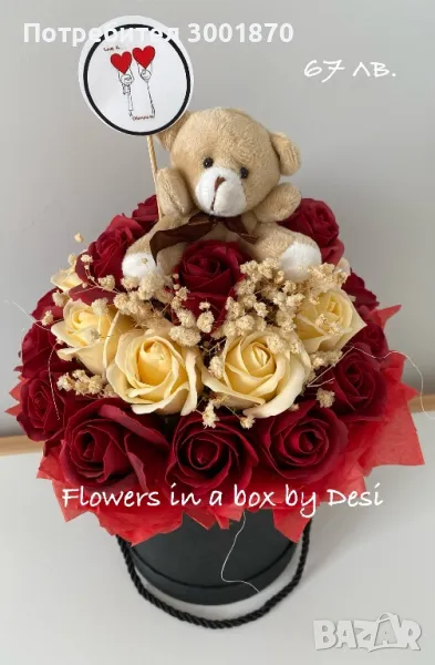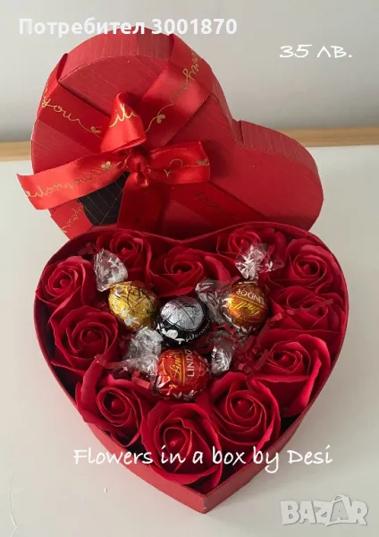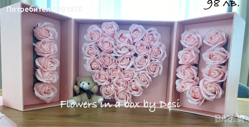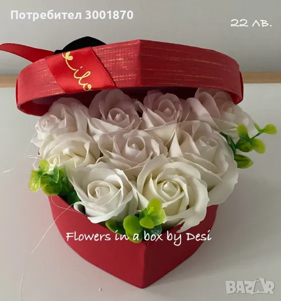 Сапунени рози в кутия подарък за Свети Валентин → Обява 48650744