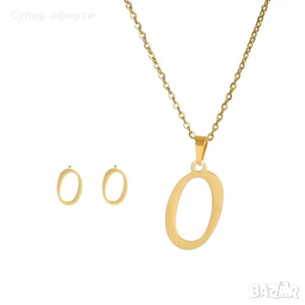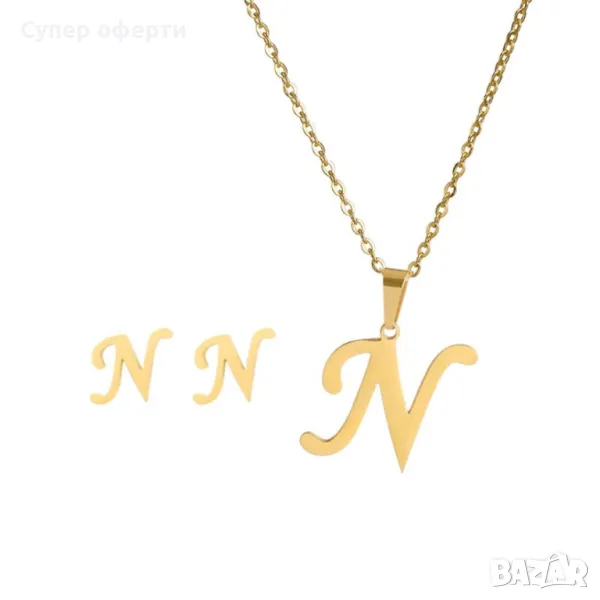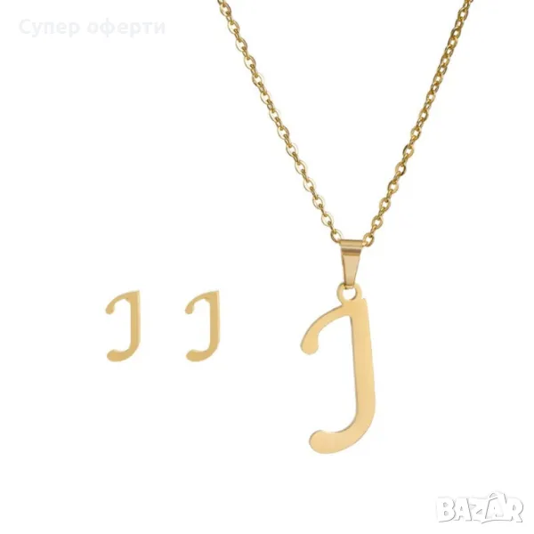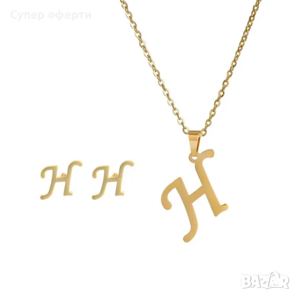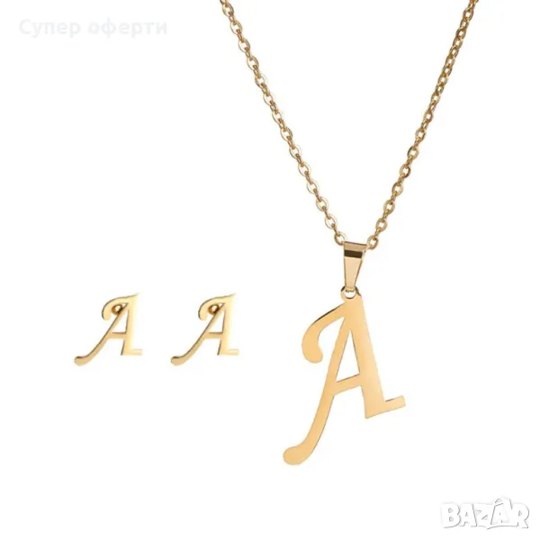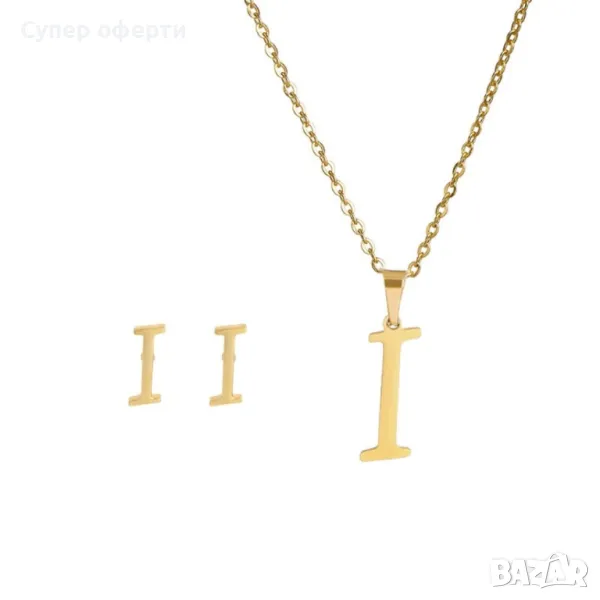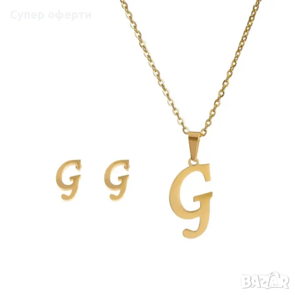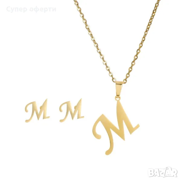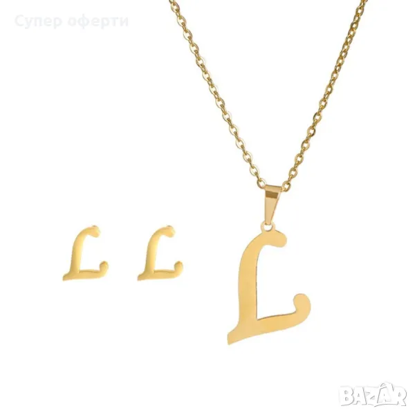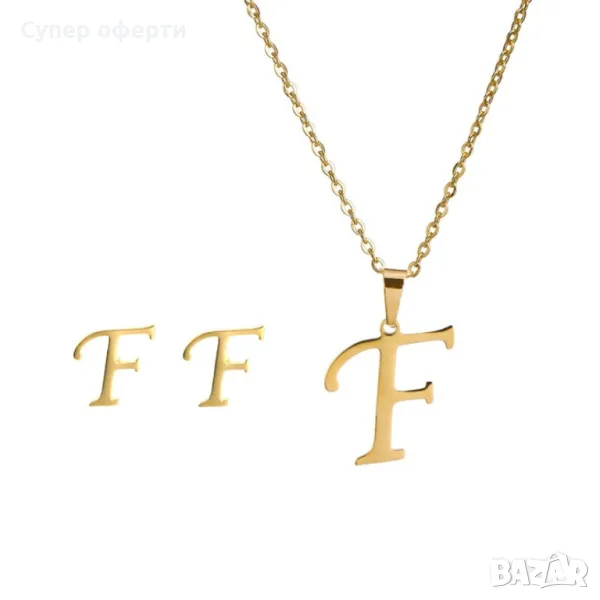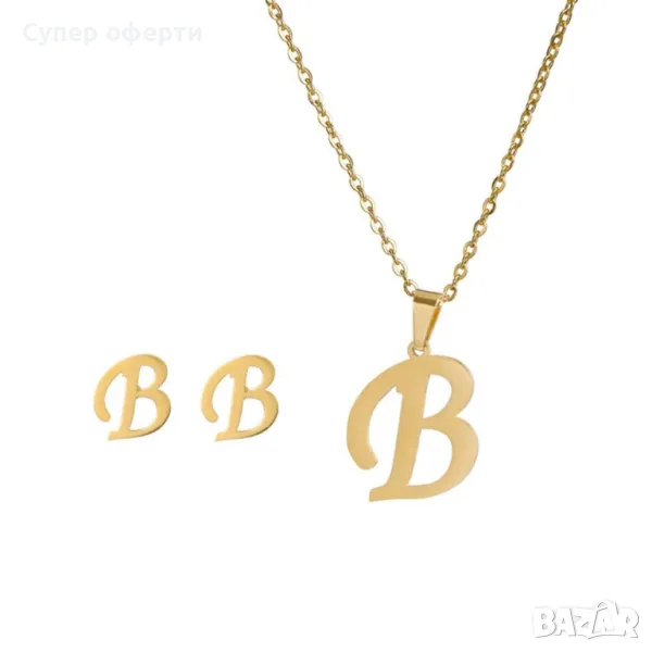 Дамско колие със златно покритие - висулка буква и две букви обеци. → Обява 48652433