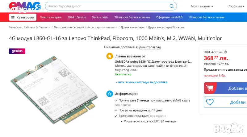 https://www.emag.bg/4g-modul-l860-gl-16-za-lenovo-thinkpad-fibocom-1000-mbit-s-m-2-wwan-multicolor-4xc1m72798/pd/D5J86FYBM/?cmpid=380835&utm_source=google&utm_medium=cpc&utm_campaign=DSA_-_All_Products_3P&utm_content=166924240313&gad_source=1&gclid=CjwKCAiA7Y28BhAnEiwAAdOJUMJSfr8_etZRnNsQmrWudO8qriCVSOet1BAEqF8L6l8sbyqxJKRwehoCjQwQAvD_BwE