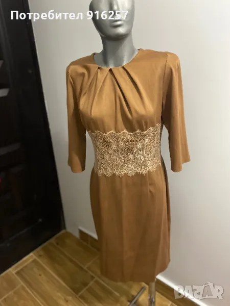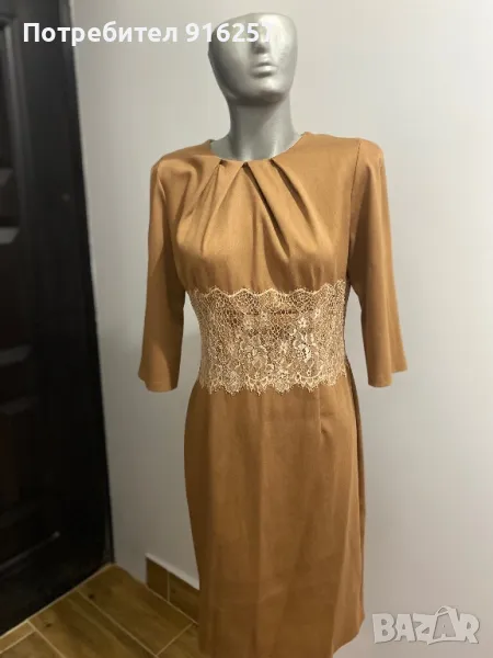 Рокля цвят горчица . Размер М , подходяща и за малък L. С дантела в талията . Офис рокля , стилна и елегантна .