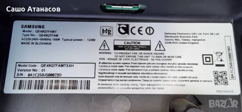SAMSUNG QE49Q7FAMT с счупена матрица ,BN44-00899A ,BN41-02572A ,CY-QM049FLLV1H ,WCM730Q ,BN41-02577A → Обява 48653997