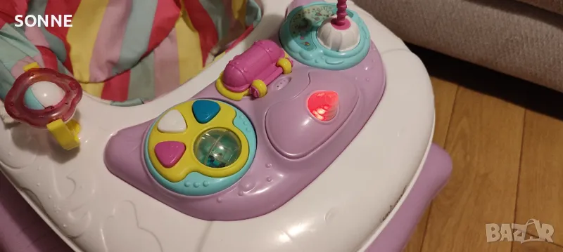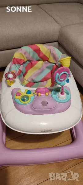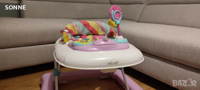 Предлагам бебешка проходилка Cangaroo Unicorn в отлично състояние. Използвана е съвсем малко у дома и всичко по нея работи безупречно. Разполага с различни играчки, мелодии и светлинни ефекти, които ще се харесат на Вашето дете.