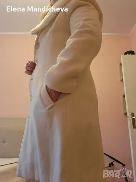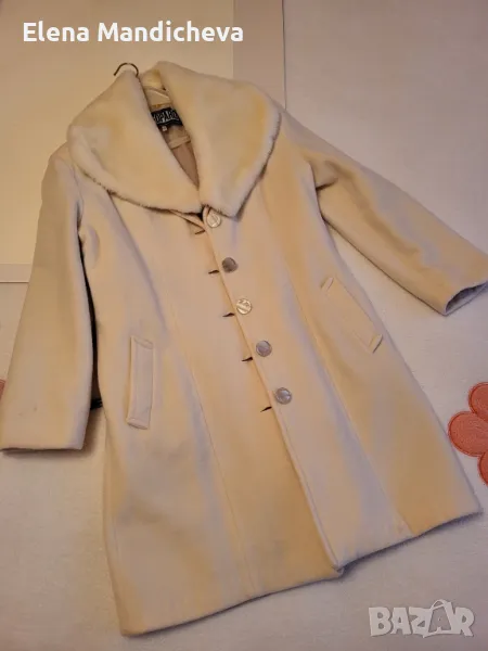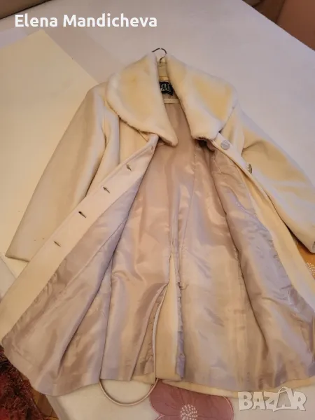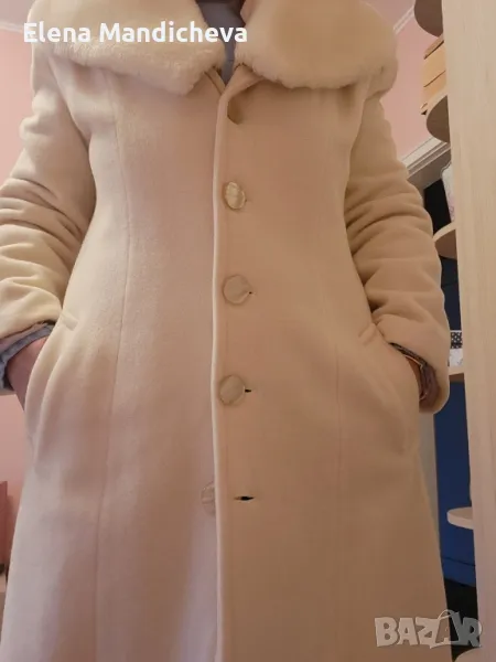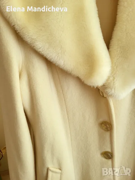Бяло Шампанско палто яке връхна дреха с пухена яка → Обява 48654553