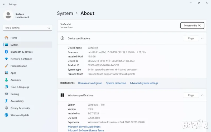Инсталиран Windows 11 PRO, оригинален към лаптопа