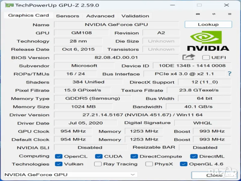 ВИДЕО КАРТА NVIDIA 940M 1GB GPU (1GB GDDR5) - подходяща за игри