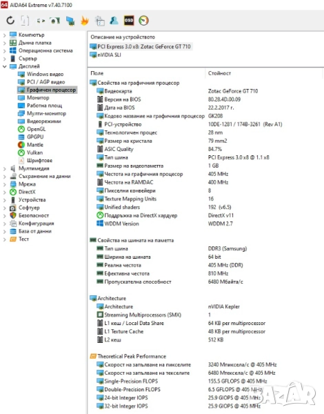Видео карта - Zotac GeForce GT 710 Low profile (1 GB DDR3 / 64 Bit)