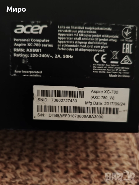 Дънна платка - Acer Aspire XC-780 (Intel Sunrise Point H110, Intel Kaby Lake-S)