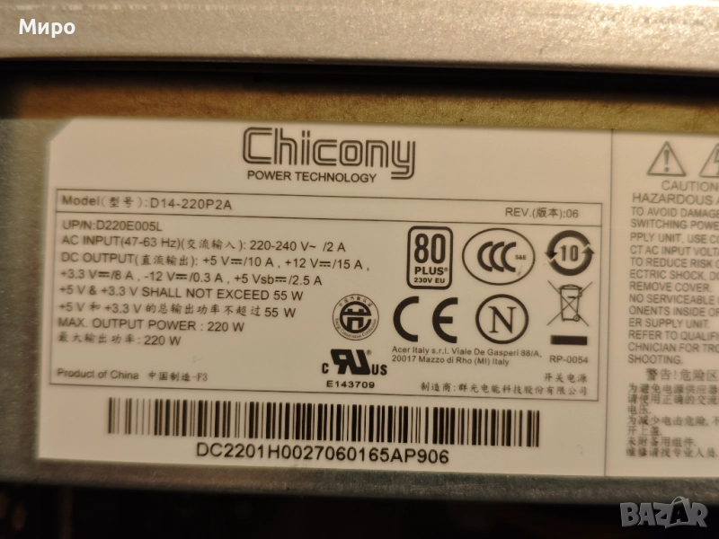 Power - 220W Chicony 80 Plus SFX (D14-220P2A rev.06)
