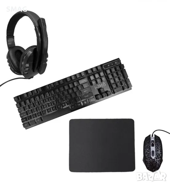 Геймърска клавиатура, мишка и подложка, комплект слушалки с LED осветление S_1228265