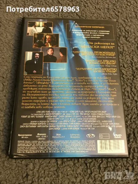 Оригинален DVD филм с главното участие на Робърт Де ниро '' Завръщане от Отвъдното '' Филмът е с български субтитри . Времетраене 98 минути. Много запазен, работи отлично . Цветен .