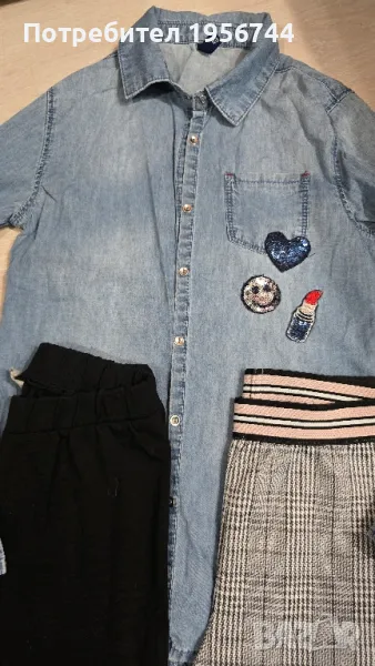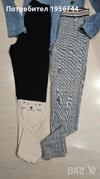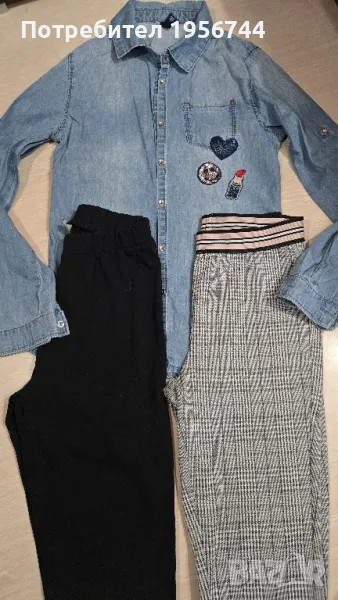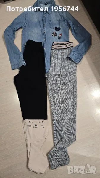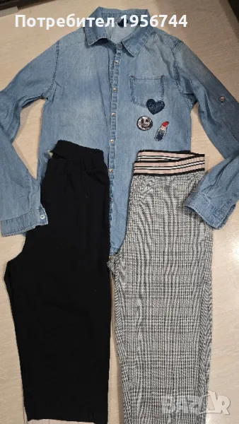 Лот памучни и много стилни клинчета+дънчена ризка за момиче 11-12г. Едното клинче е тип панталон-право, тясно по крачето. Дрешките са обличани броени пъти!