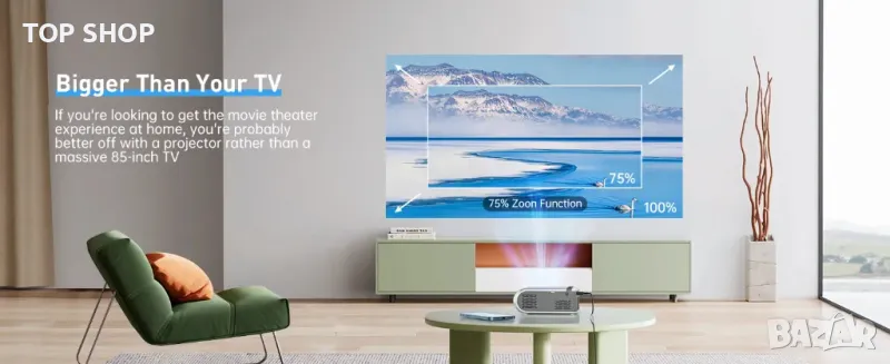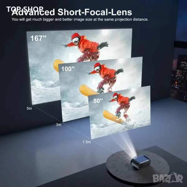 мини проектор е оборудван с най-усъвършенствания късофокусен обектив, което означава, че ще получите много по-голям и по-добър размер на изображението на същото прожекционно разстояние. Нашият проектор осигурява прожекционни размери от 30" до 170" и притежава функция за увеличение от 75% до 100%. Той е лесен за носене и работа, със забележим модерен индустриален и рационализиран дизайн.