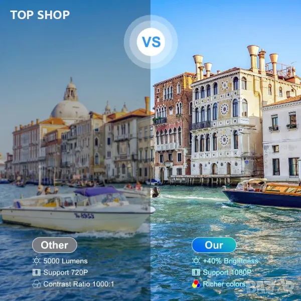 【Поддържа се 1080P Full HD】Мини проекторът Kolexa използва усъвършенствана LED технология и метод на равномерно осветяване, което прави краищата на проекцията по-ярки и ясни. Този малък проектор се отличава с 40% увеличена яркост в сравнение с други проектори. Те гарантират, че качеството на прожекционното изображение представя реален, динамичен и наситен с цветове ефект.