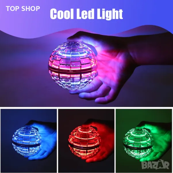 Летящата топка използва 4 мощни мотора и усъвършенствана инфрачервена сензорна технология за управление. Вграденият жироскоп поддържа топката в баланс. Трябва леко да хвърлите топката нагоре и тя веднага започва да лети.